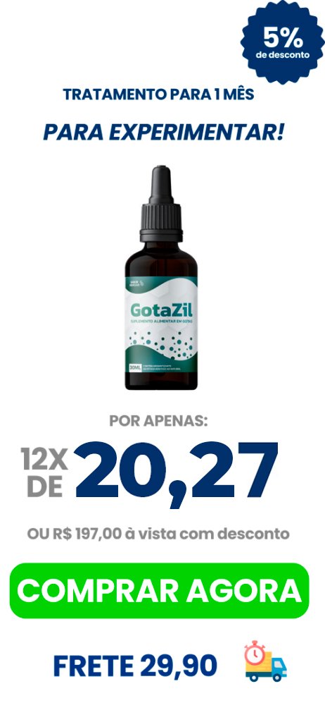 Este site é 100% protegido contra recursos de má intenção. Suas informações pessoais são sigilosas segundo a nossa Política de Privacidade e a entrega é garantida! O Gotazil é vendido diariamente para pessoas de todo o Brasil.
